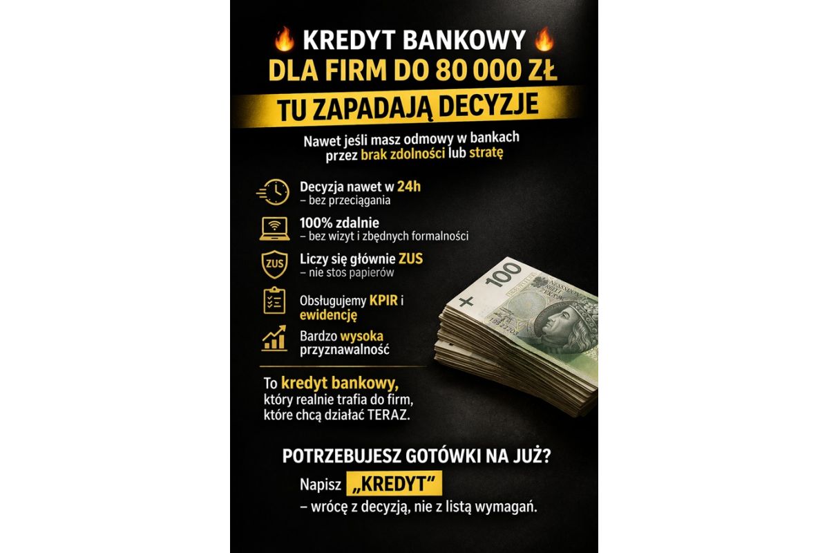 KREDYT BANKOWY DLA FIRM DO 80 000 ZŁ TU ZAPADAJĄ DECYZJE