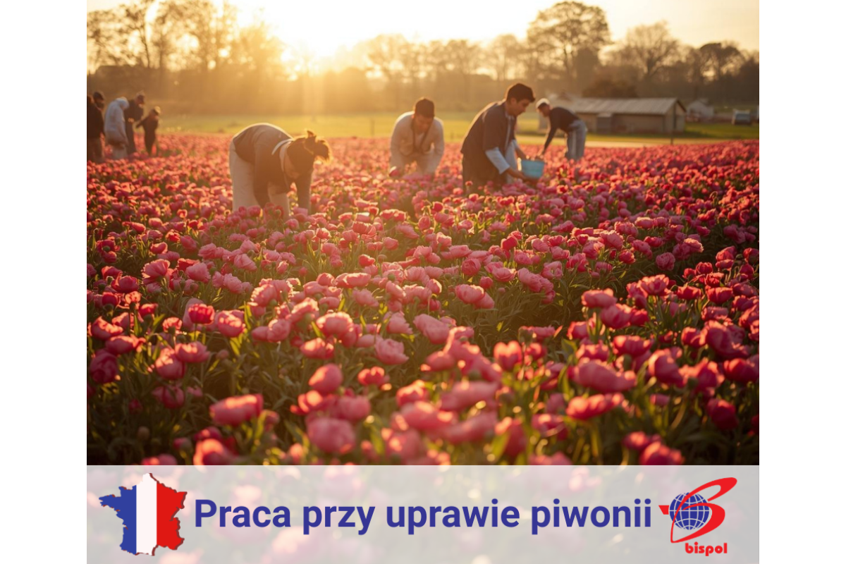 Praca w gospodarstwie rolniczo-ogrodniczym przy uprawie piwonii i liści ozdobnych.